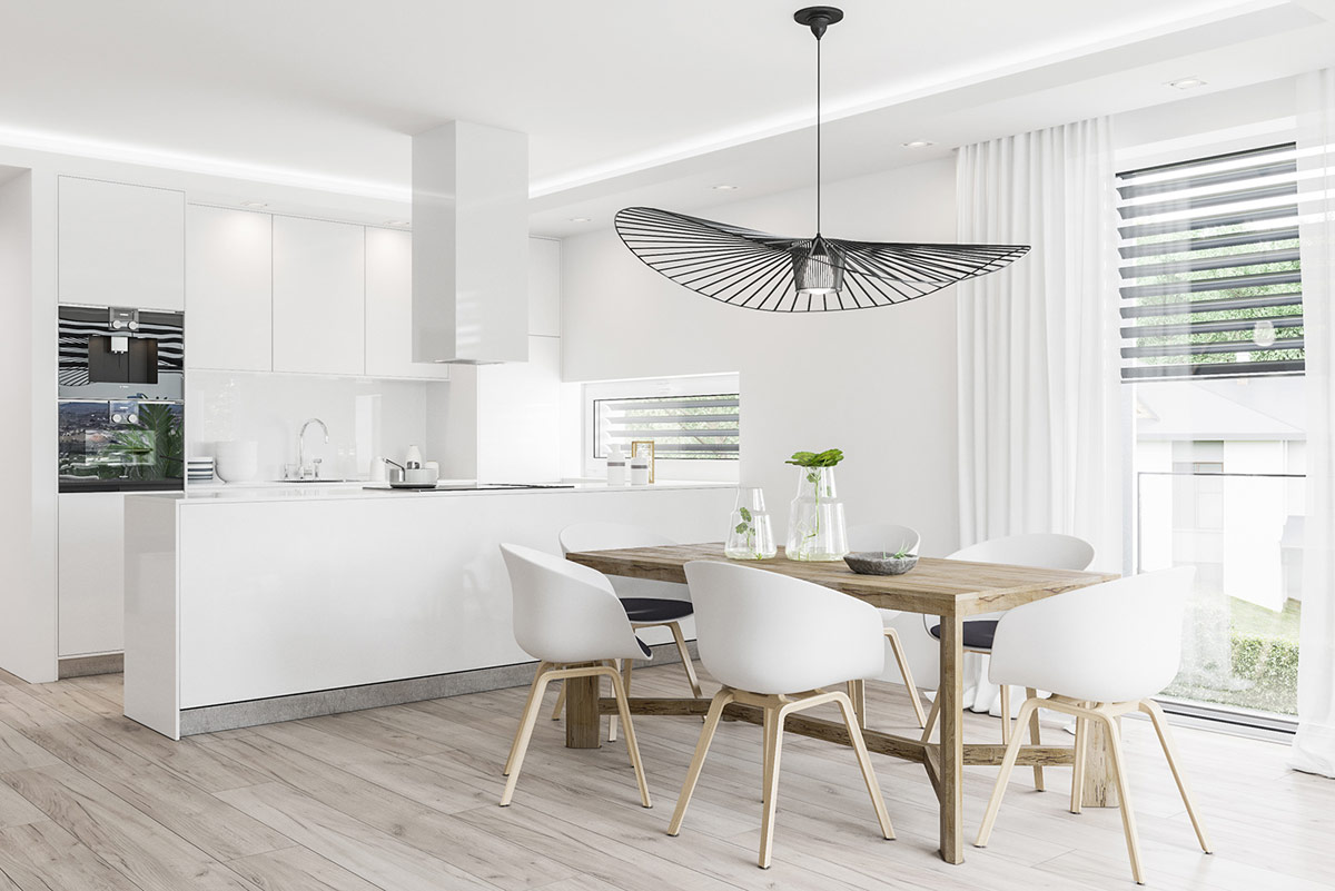 造型感强烈的现代风格吊灯在餐厅的空间尤为抢眼